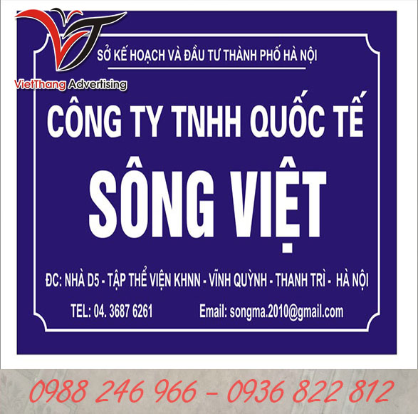 Quảng cáo VIỆT THẮNG luôn là lựa chọn tốt nhất cho khách hàng khi có nhu cầu làm biển công ty bằng mica dán decal hay các chất liệu khác như đồng,inox,…….